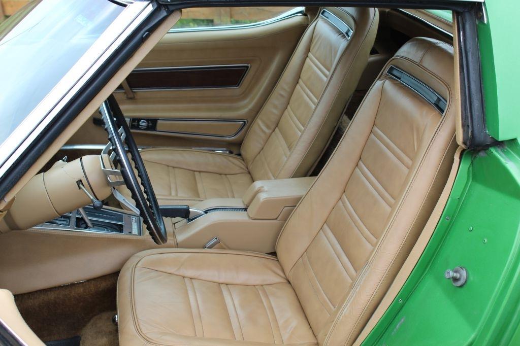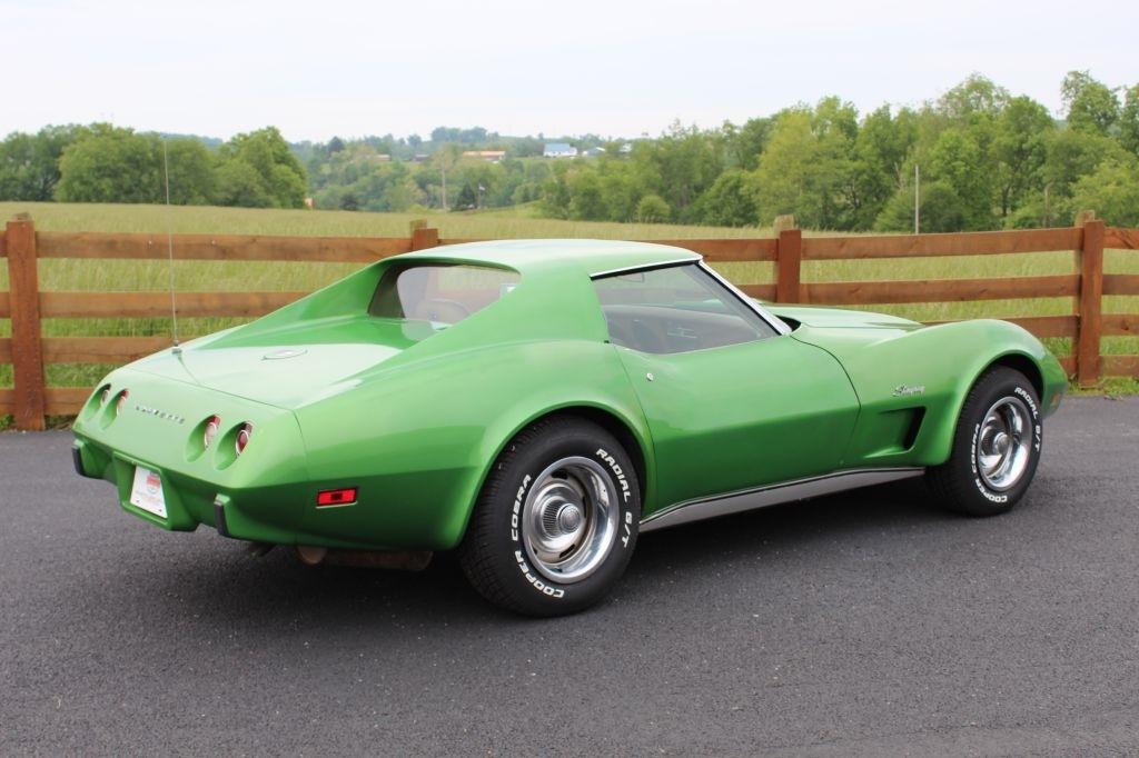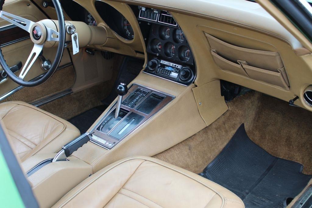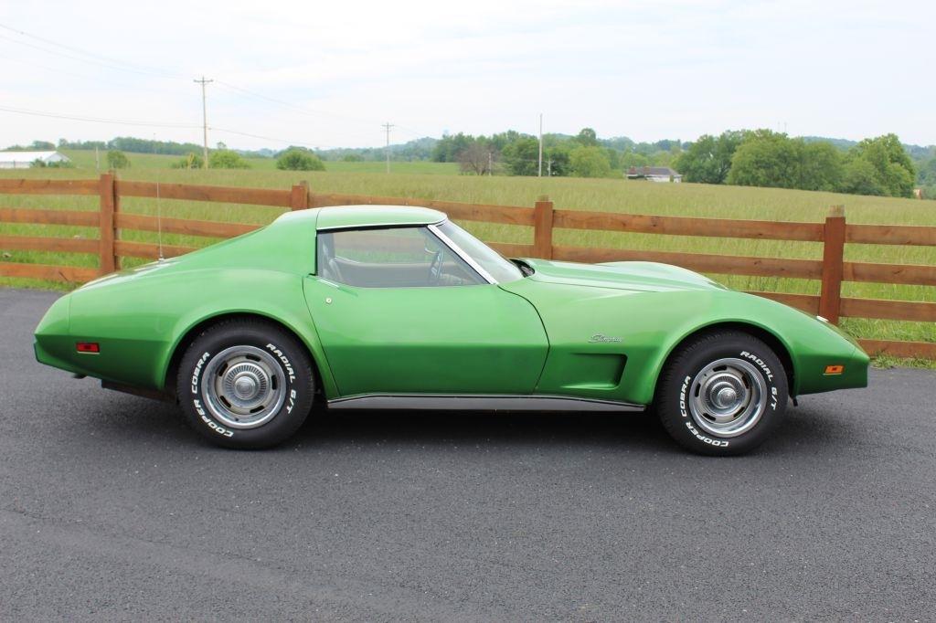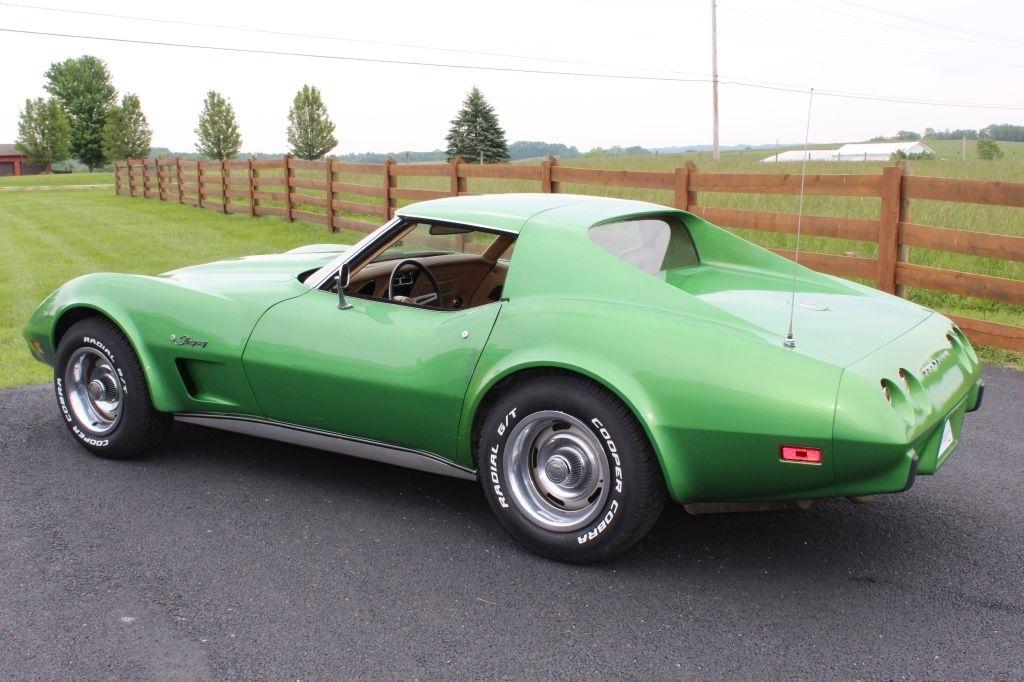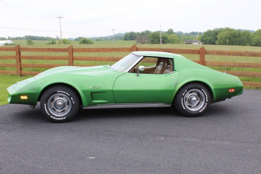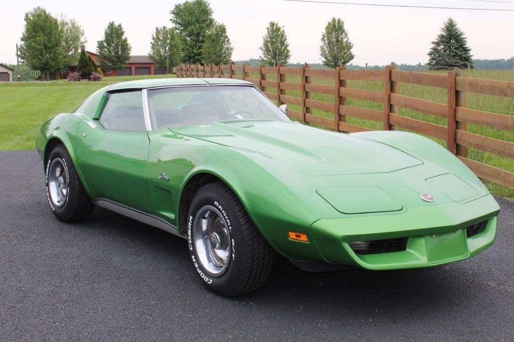 1975 Corvette Coupe C3 Original rare Bright Green paint, Saddle interior, Power Steering, Power brakes, upgraded front and rear fiberglass bumper covers, 350 CID 4 barrel engine, Automatic transmission, 47K actual miles, last owner had since 1977, T-tops, Original AM/FM Cassette radio, non-working A/C, New Cooper tires, Runs and drives great
